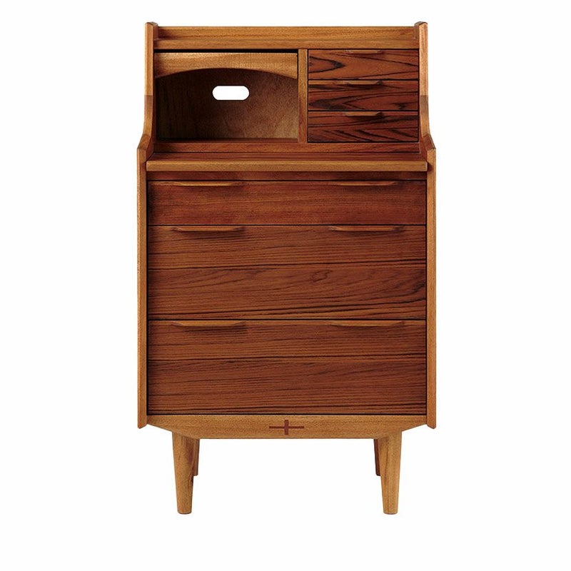 上部に小さめの引き出しが3杯、下部に大きめの引き出しが3杯付いています。