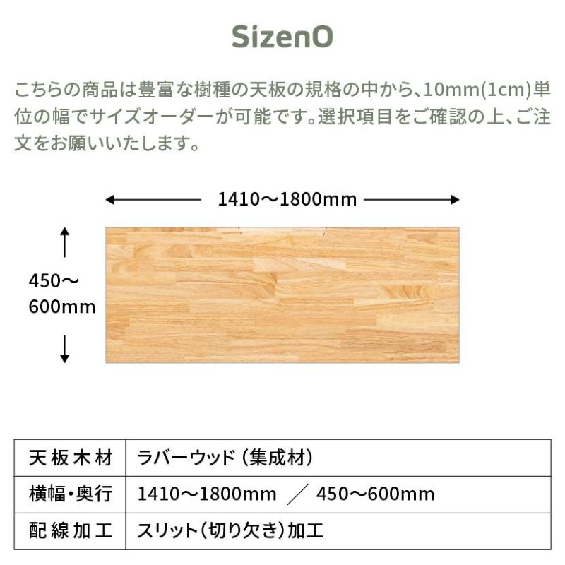 横幅と奥行が1cm(10mm)ごとにサイズオーダーが可能です。