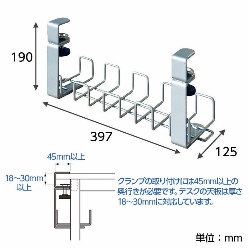 | 対応天板厚 | 18~30mm、奥行き=45mm以上 |