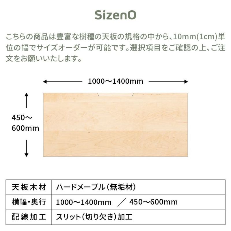 幅100~140cm サイズオーダーデスク Sizeno(シゼノ) パソコンデスク ハードメープル 無垢材 木製 A字脚 スチール脚 天然木 パソコンデスク 切り欠き オフィスデスク テレワークデスク 勉強机 おしゃれ 北欧モダン 書斎 ナチュラル