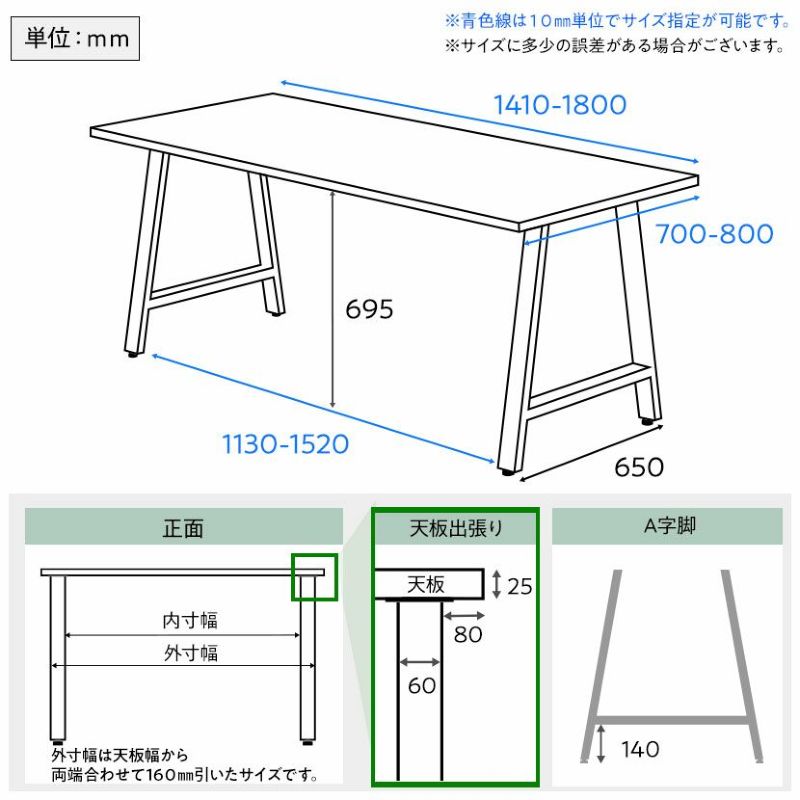 幅141~180cm サイズオーダーデスク Sizeno(シゼノ) パソコンデスク ウォールナット 無垢材 木製 A字脚 スチール脚 天然木 パソコンデスク 切り欠き オフィスデスク テレワークデスク 勉強机 おしゃれ ウッディモダン 書斎 ダークブラウン