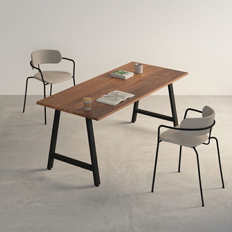 幅141~180cm サイズオーダーデスク Sizeno(シゼノ) パソコンデスク ウォールナット 無垢材 木製 A字脚 スチール脚 天然木 パソコンデスク 配線穴 オフィスデスク テレワークデスク 勉強机 おしゃれ ウッディモダン 書斎 ダークブラウン