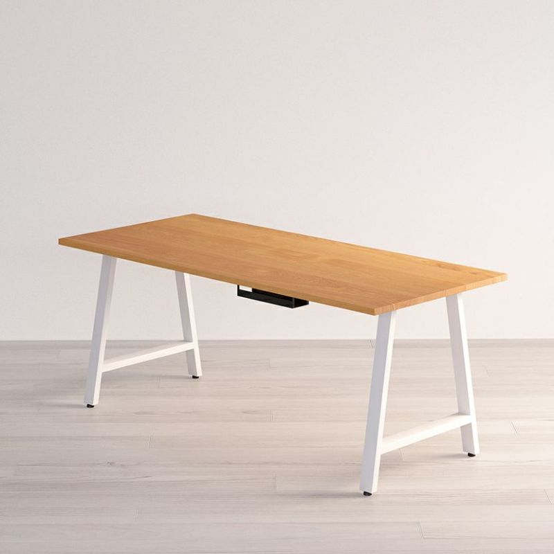 幅141~180cm サイズオーダーデスク Sizeno(シゼノ) パソコンデスク ホワイトオーク 無垢材 木製 A字脚 スチール脚 天然木 パソコンデスク 配線穴 オフィスデスク テレワークデスク 勉強机 おしゃれ ウッディモダン 書斎 ブラウン