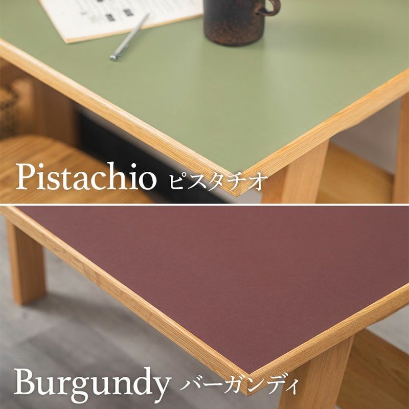 天然素材のリノリウム天板リノリウムは柔らかでマットな質感。適度な弾力があり書き物にも最適です。リノリウムの魅力●天然の原材料