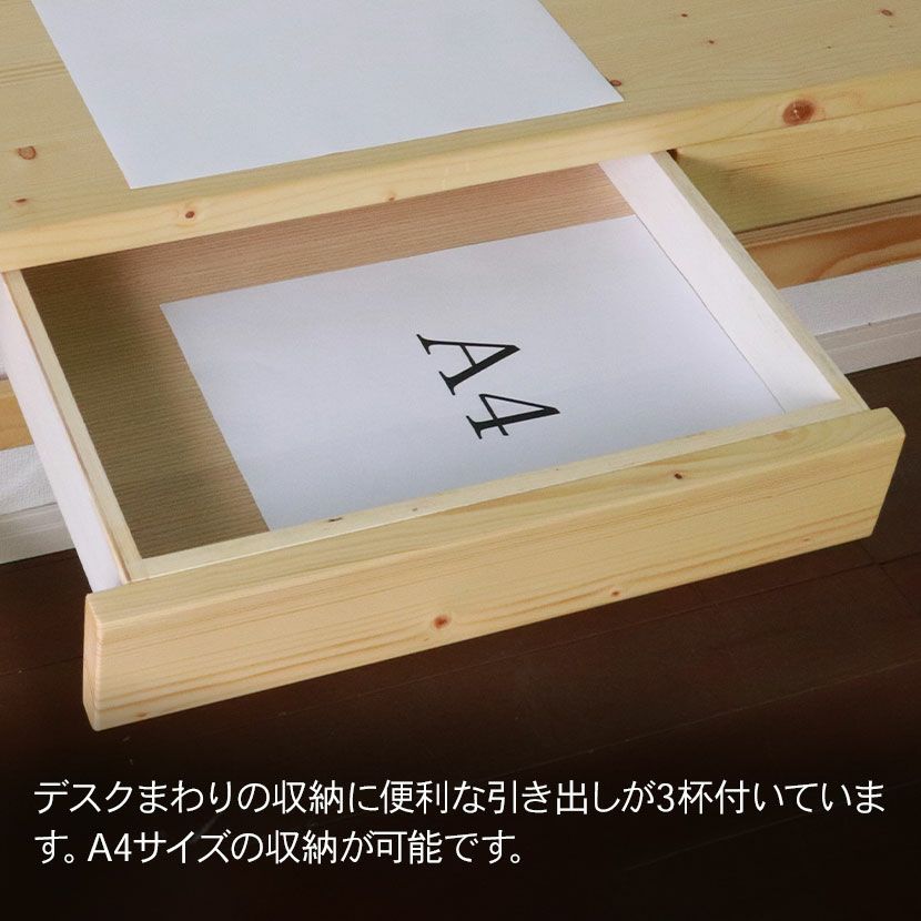 ●デスクまわりの収納に便利な引き出しが3杯付いています。