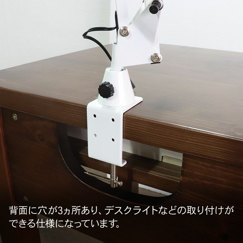 ●穴が3ヵ所あり、デスクライトなどの取り付けができる仕様になっています。