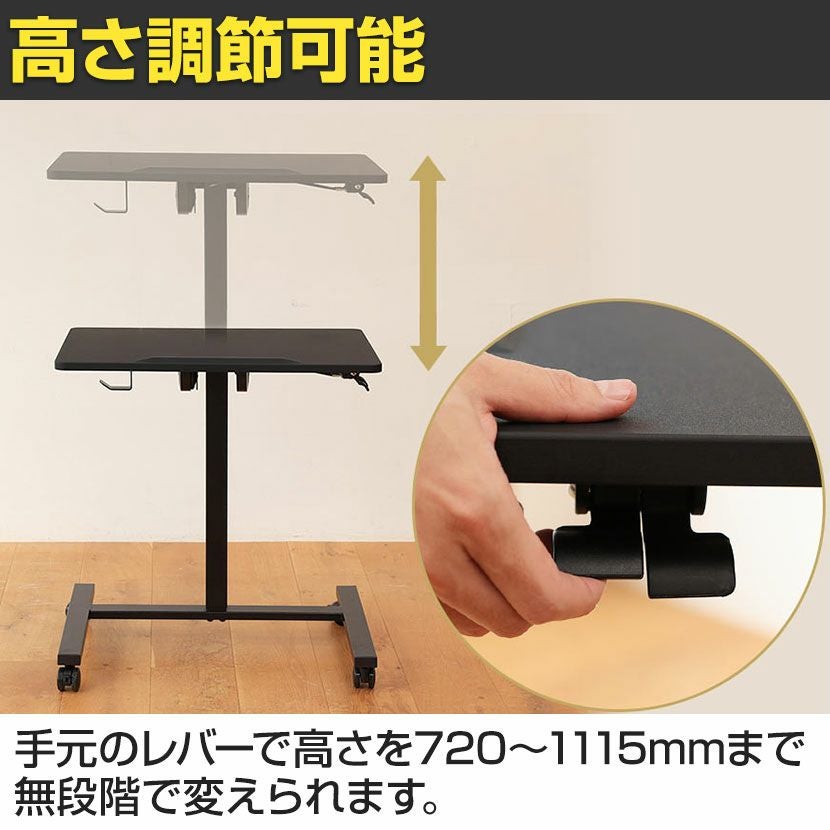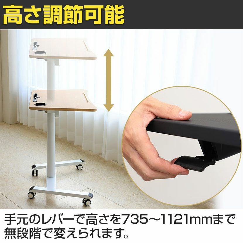 他の画像を見る 幅70cm 昇降テーブル E-WIN ガス圧昇降式 高さ調節 角度調整 折りたたみ キャスター付き スタンディングテーブル スタンディングデスク 送料無料 送料無料 ¥ 26,990 税込 カートに入れる