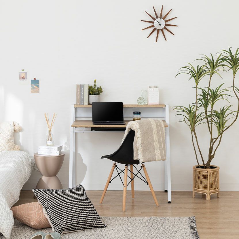 『暮らしのデザイン』は、幅80~99cmのパソコンデスクを通販でご提供。ウッディモダンなどのおしゃれなデザインで、書斎やリビング、オフィスの雰囲気に合わせてお選びいただけます。お部屋に設置しやすいコンパクトサイズのため、テレワーク用にもおすすめです。