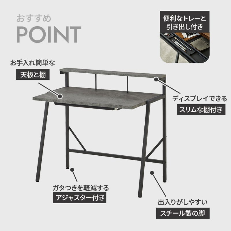 お気に入りの小物を飾ったり、よく使う文房具やカレンダーを置いたりと、作業スペースを邪魔することなく実用的にご活用いただけます。