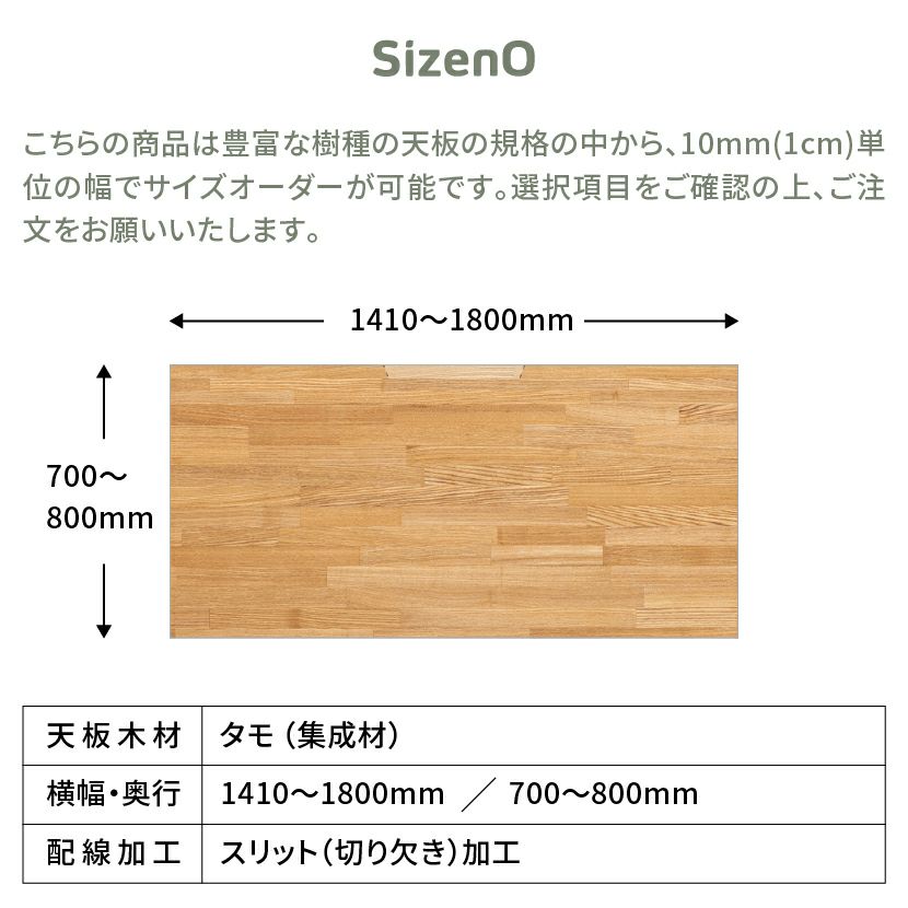 幅141~180cm サイズオーダーデスク Sizeno(シゼノ) パソコンデスク タモ 集成材 木製 T字脚 スチール脚 天然木 パソコンデスク 切り欠き オフィスデスク テレワークデスク 勉強机 おしゃれ ウッディモダン 書斎 ブラウン
