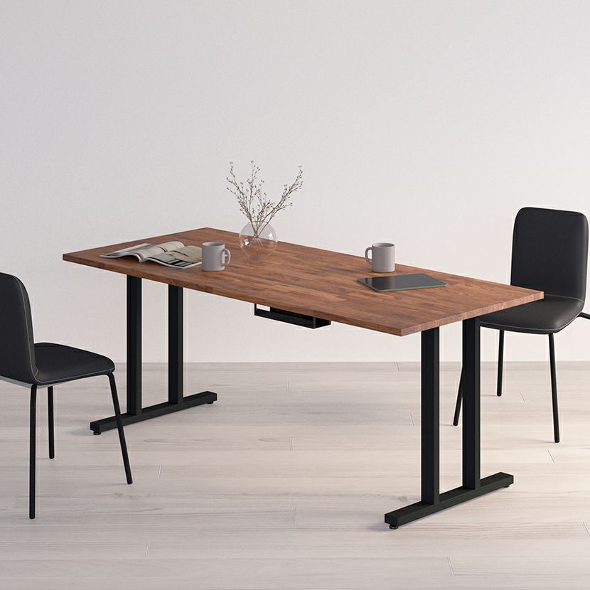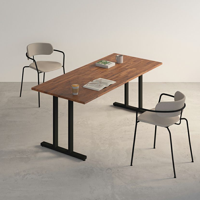 幅141~180cm サイズオーダーデスク Sizeno(シゼノ) パソコンデスク ウォールナット 集成材 木製 T字脚 スチール脚 天然木 パソコンデスク 配線穴 オフィスデスク テレワークデスク 勉強机 おしゃれ ウッディモダン 書斎 ダークブラウン