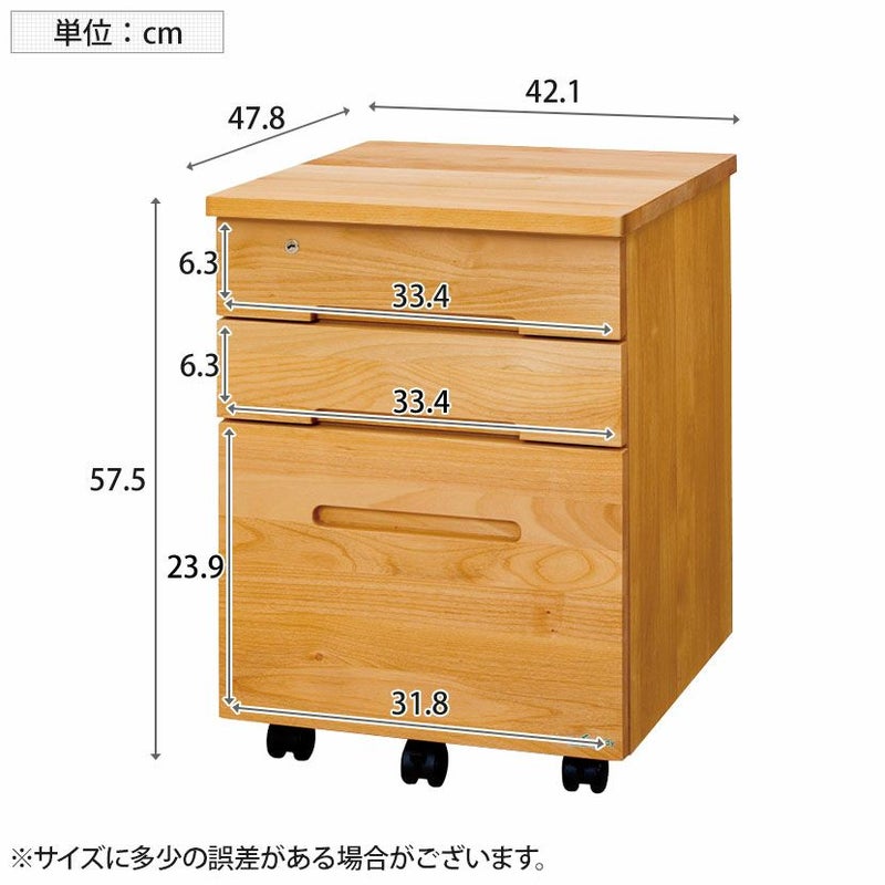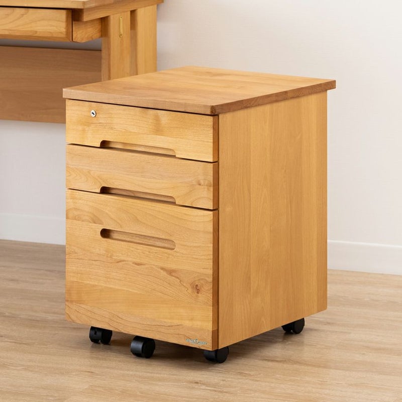 【堀田木工所】幅42.1cm デスクワゴン 日本製 ウィンディ 木製 天然木 収納 引き出し 3段 キャスター付き デスク収納 チェストワゴン サイドワゴン ナチュラル