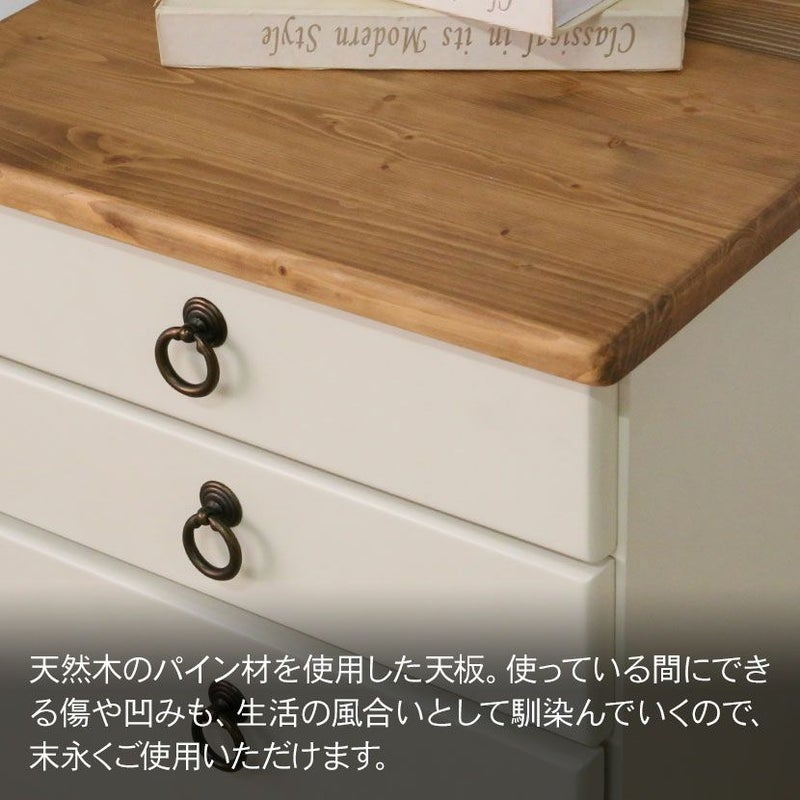 バイカラーが特徴のフレンチカントリーシリーズ、 ラベンダー。丸みを帯びたフォルムにアンティーク調の取っ手と細部にまでこだわり製作しています。パイン無垢材に素朴で淡いホワイト色の組合わせは、温かみのある優しいフレンチダイニング空間を演出してくれます。ラベンダーに近いブルーグレー色は、シックで甘すぎない高級感が漂うダイニング空間を演出してくれます。