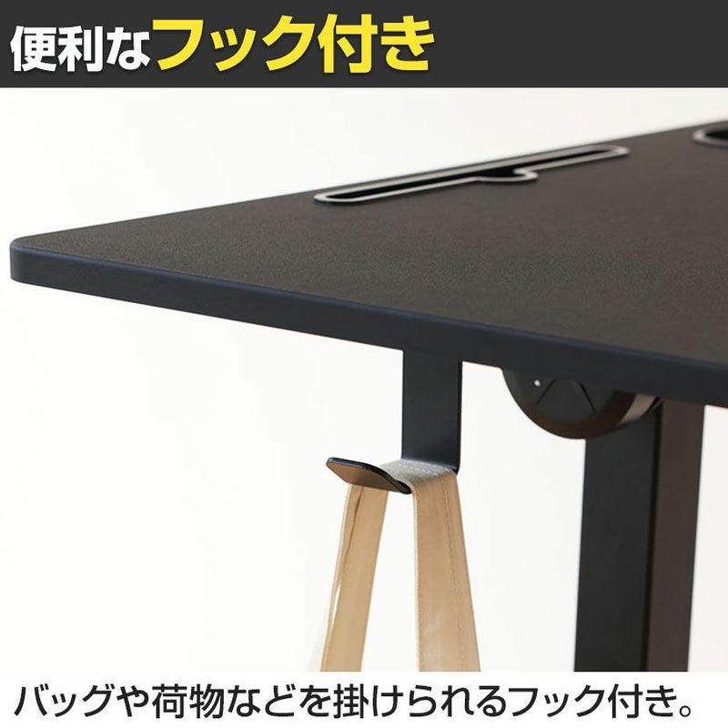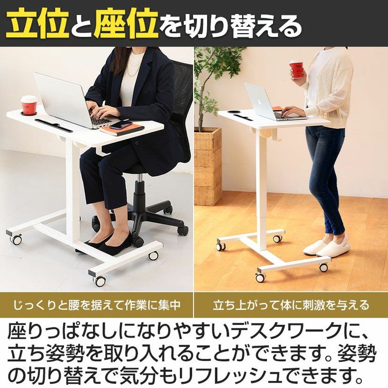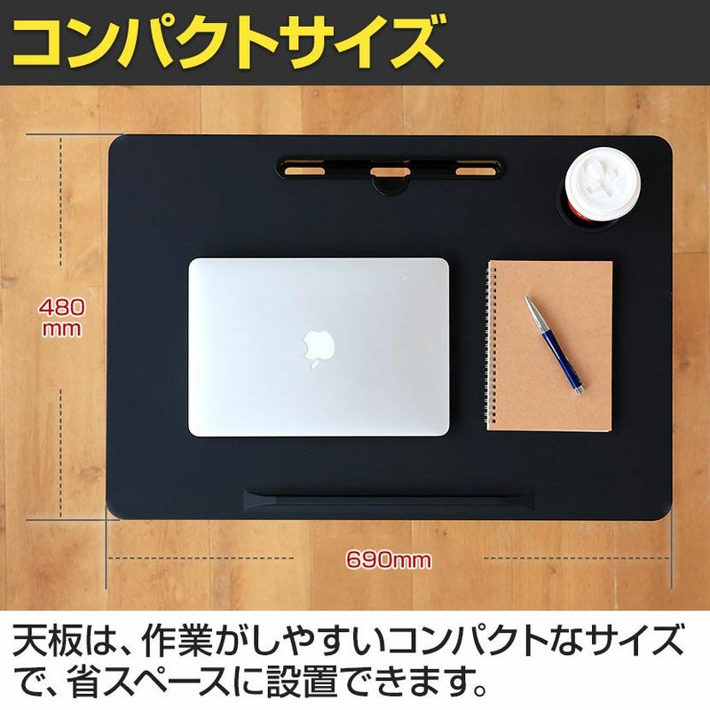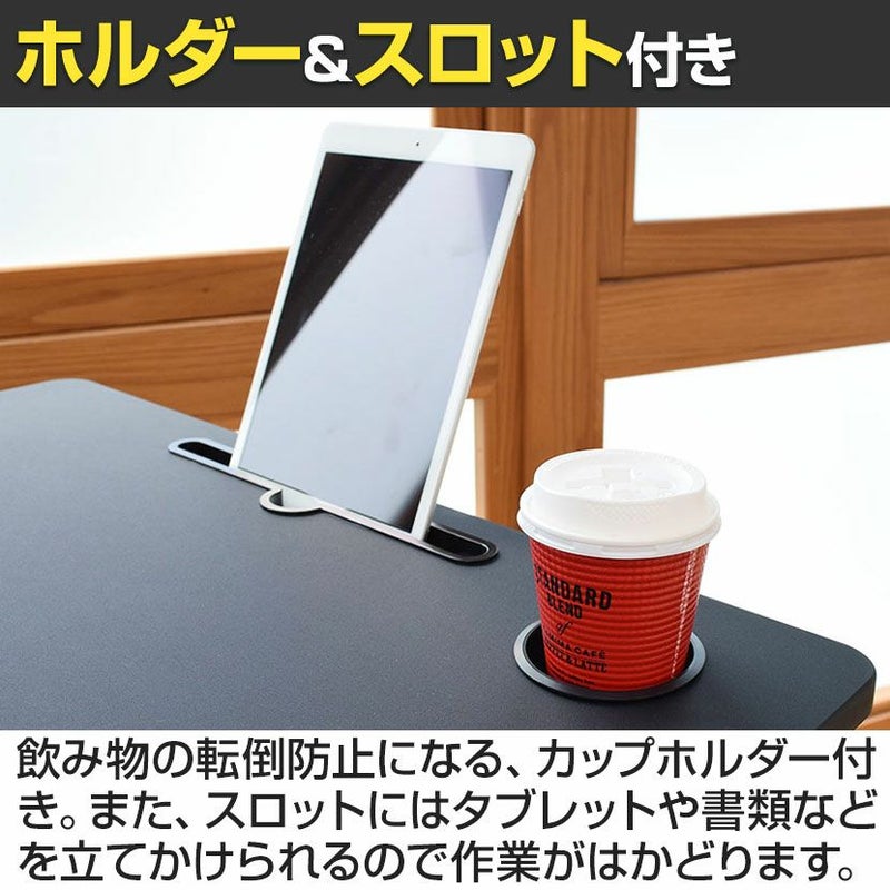 幅69cm 昇降ミニデスク 奥行48cm 傾斜台 手動レバー式 キャスター付き 角度調整可能 ホルダー スロット付き フック付き コンパクト TVSOFLD702 在宅勤務 デスク 昇降デスク スタンディングデスク