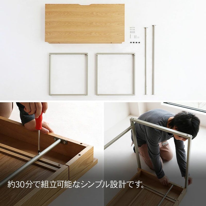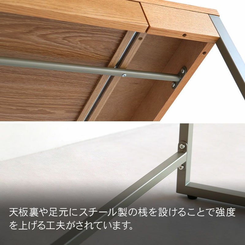 天板裏や足元のスチール製の桟を設けることで強度を上げる工夫がされています。