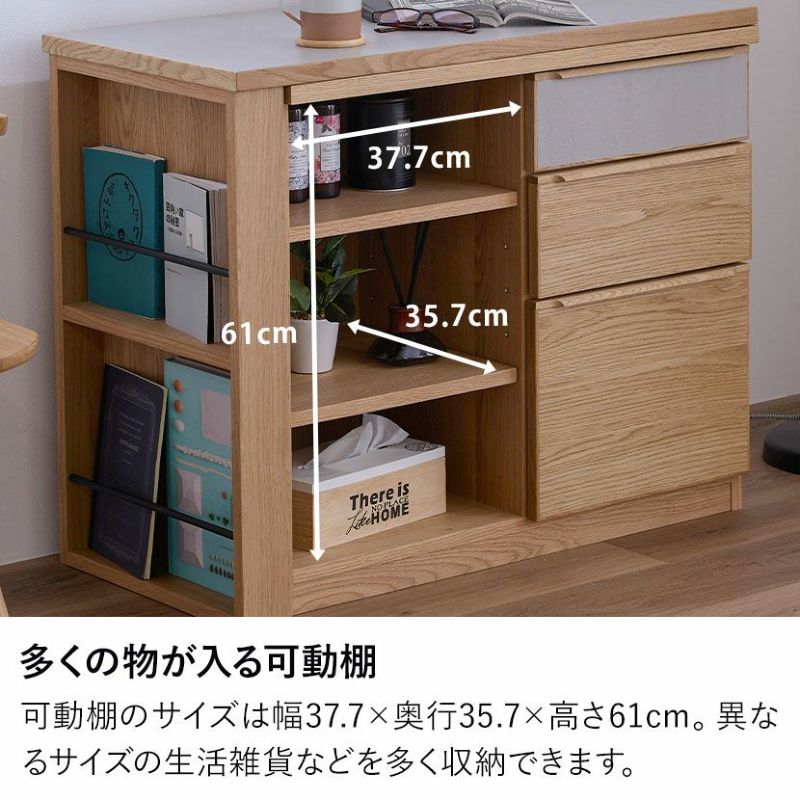 可動棚やマガジンラック、引き出しなど収納量の多いサイドボード。生活雑貨や小物をしまうのに便利です。