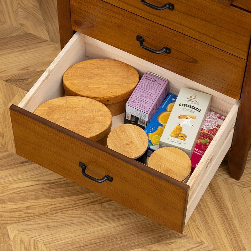 引き出しの取っ手には、アンティーク調のアイアン素材を採用しています。