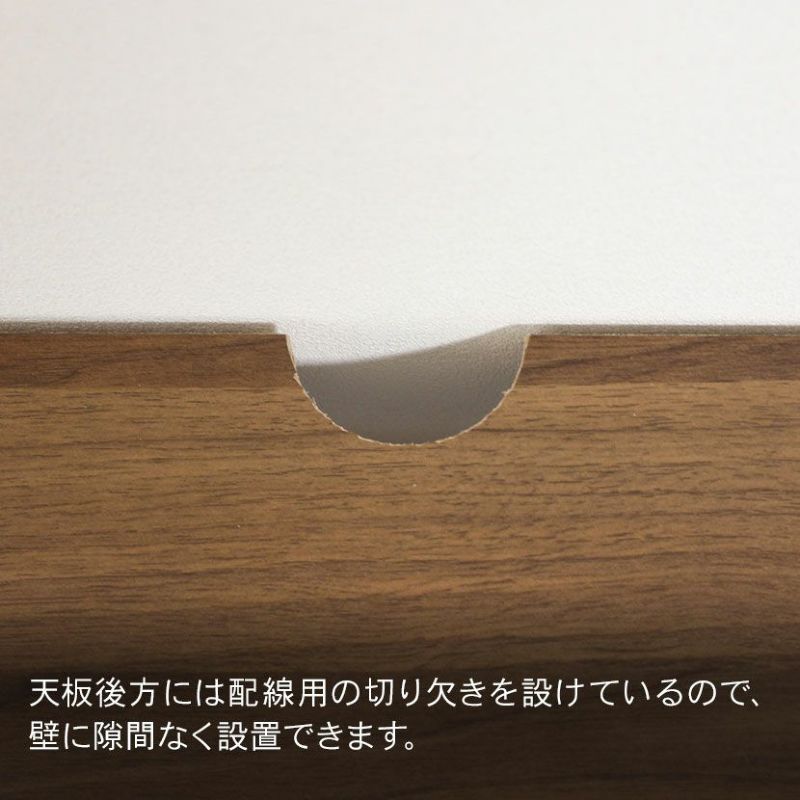 後方には配線用の切り欠きを設けているので、壁に隙間なく設置できます。