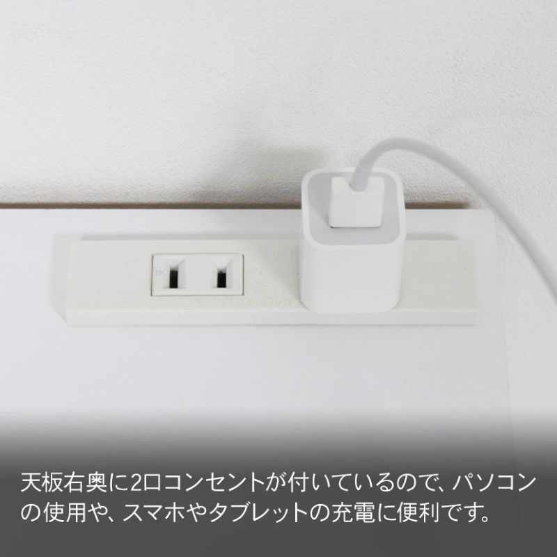 天板右奥に2口コンセントが付いているので、パソコンの使用や、スマホやタブレットの充電に便利です。