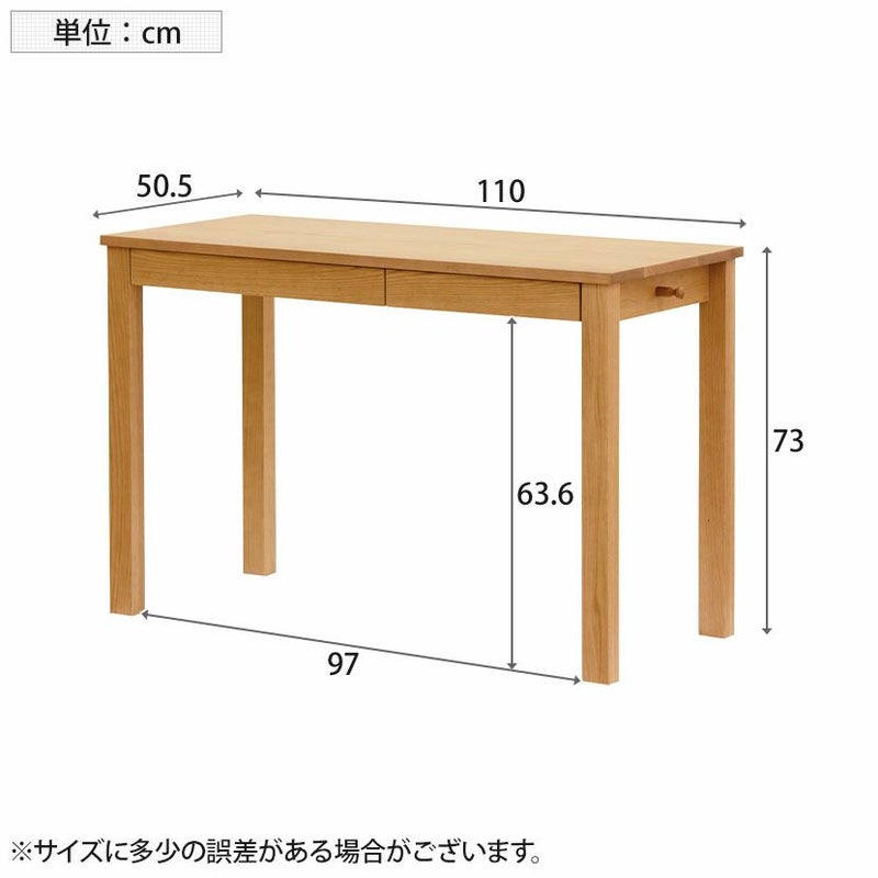| サイズ | 外寸 / 幅1100×奥行505×高さ730mm 引き出し内寸(左) / 幅506×奥行371×高さ45mm 引き出し内寸(右) / 幅338×奥行371×高さ45mm 引き出し底板厚み / 5.5mm |