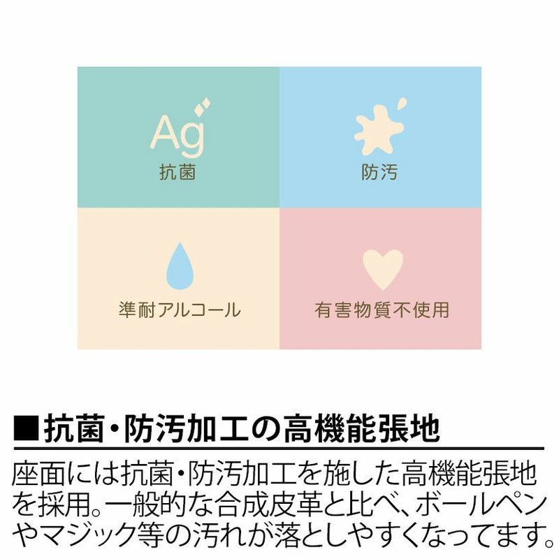 座面には毎日のご使用に備えた抗菌・防汚加工を施した高機能張地を採用。
