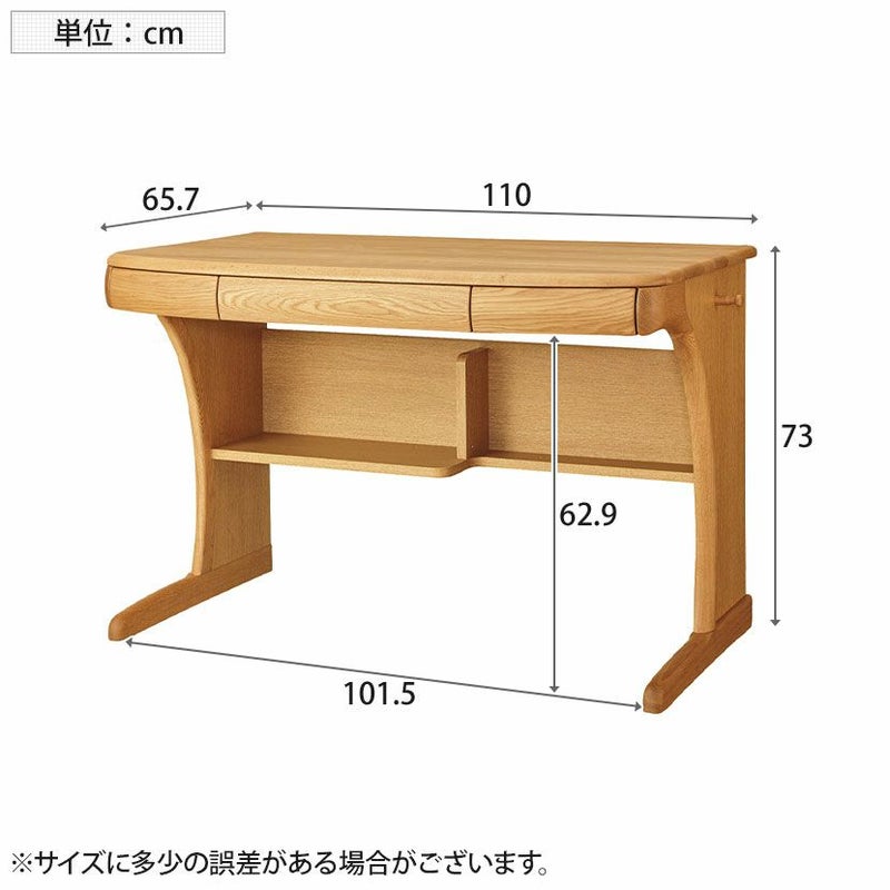| サイズ | 外寸 / 幅1100×奥行657×高さ730mm 引き出し内寸(左・右) / 幅212×奥行427×高さ53mm 引き出し内寸(中) / 幅412×奥行430×高さ53mm 引き出し底板厚み / 5.5mm |