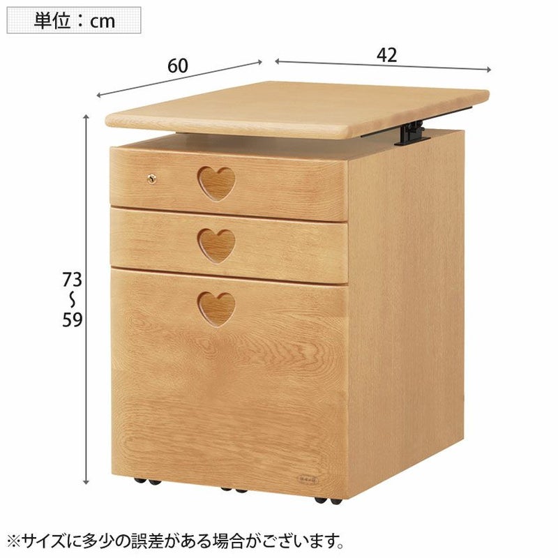 | サイズ | 外寸 / 幅420×奥行600×高さ590~730mm 引き出し内寸(上・中) / 幅332×奥行425×高さ54mm 引き出し内寸(下) / 幅313×奥行425×高さ238mm |