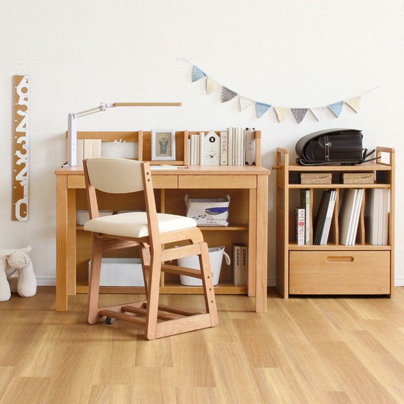 オーク無垢材の素材感を活かした大人になっても使いやすいシンプルなデザインです。
