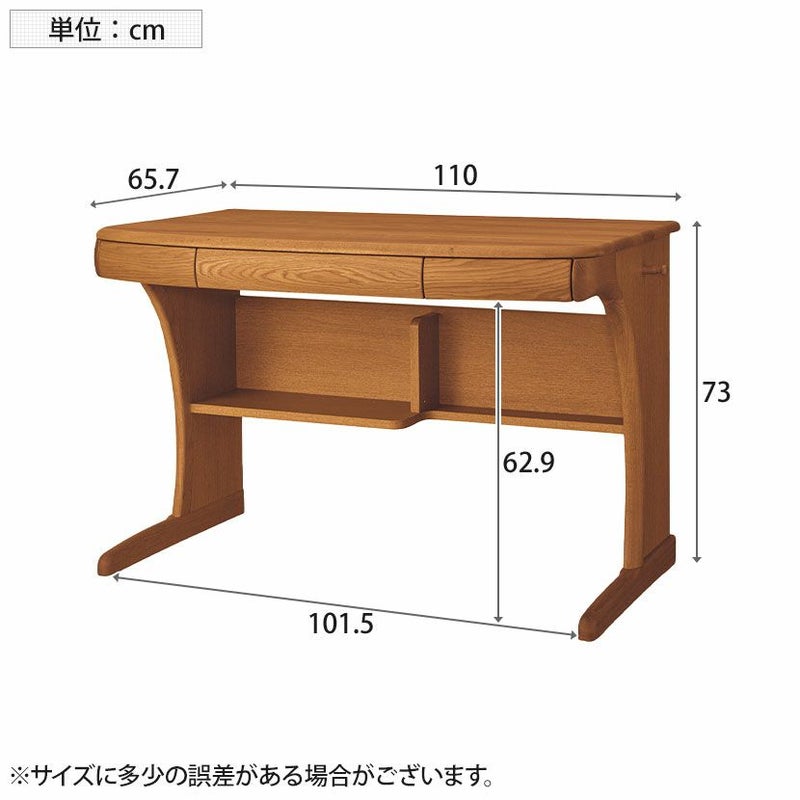 | サイズ | 外寸 / 幅1100×奥行657×高さ730mm 引き出し内寸(左・右) / 幅212×奥行427×高さ53mm 引き出し内寸(中) / 幅412×奥行430×高さ53mm 引き出し底板厚み / 5.5mm |