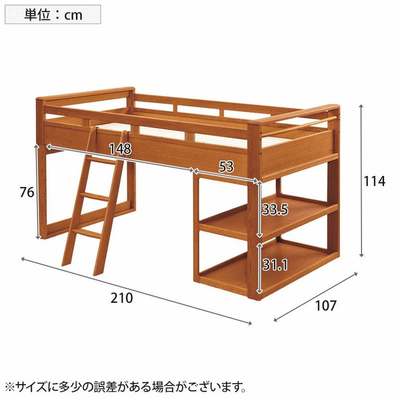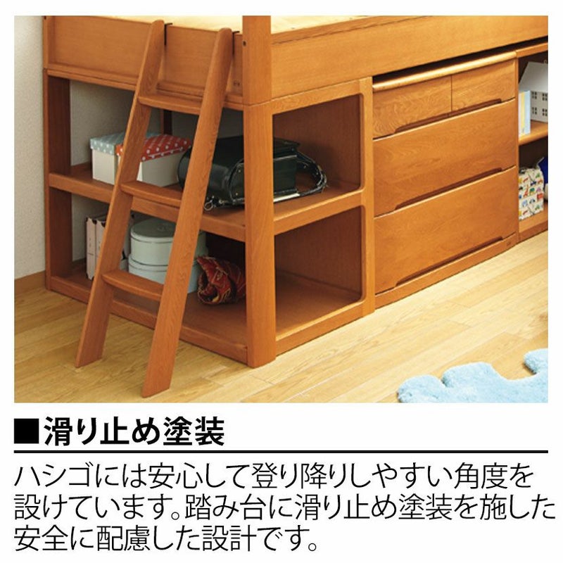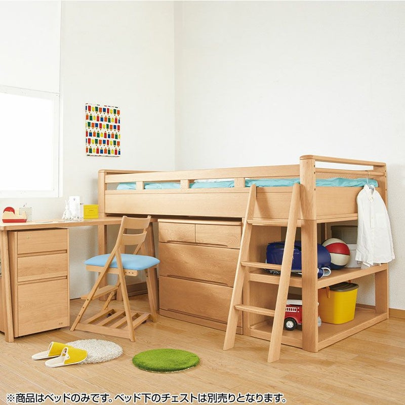 ナラ材の心地よさを生かしたシンプルなデザインと、日々の利用に耐えうる強靭さを兼ね備えたミドルベッドです。