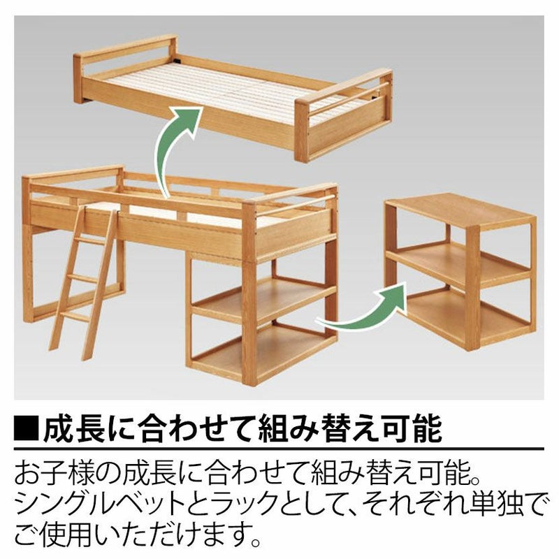 お子さまの成長に合わせて組み替え可能。シングルベッドとラックとして、それぞれ単独でお使いいただけます。