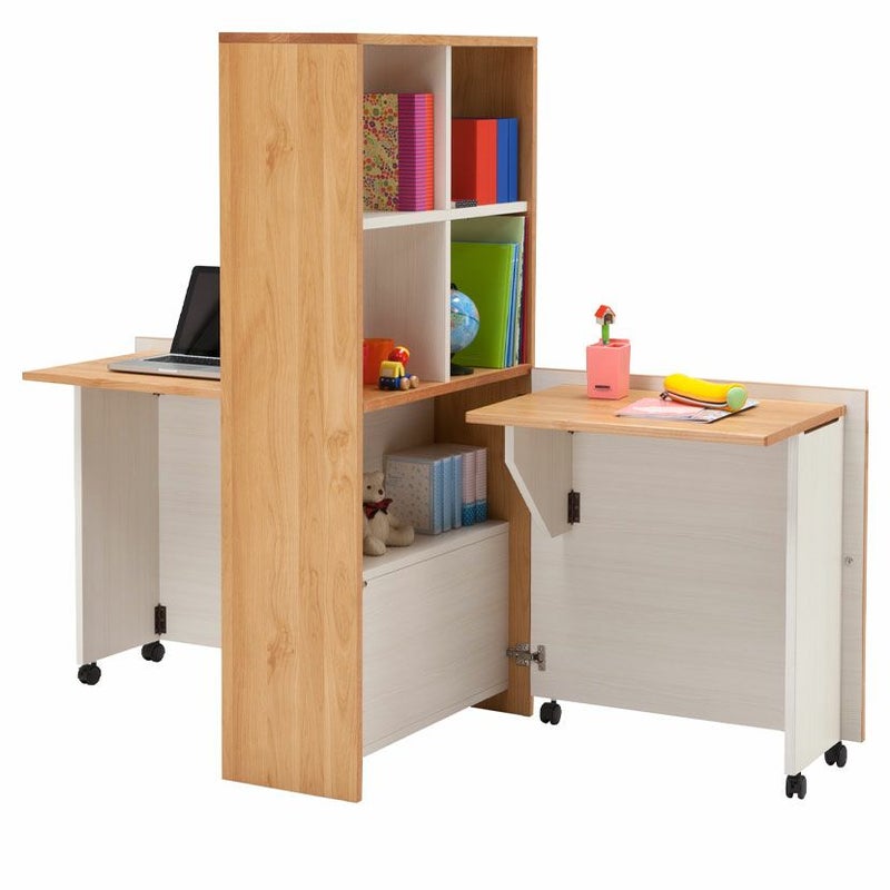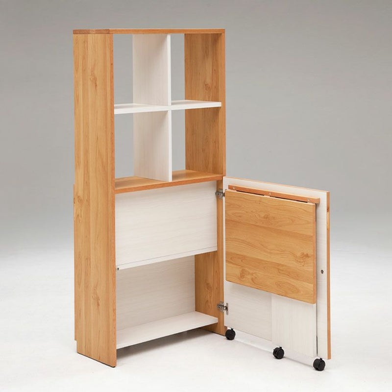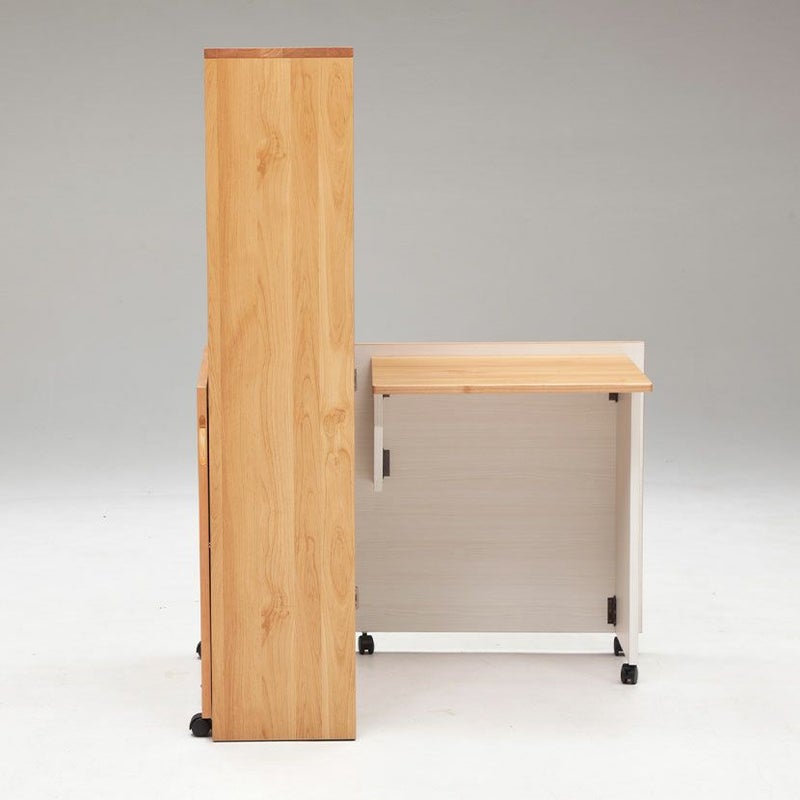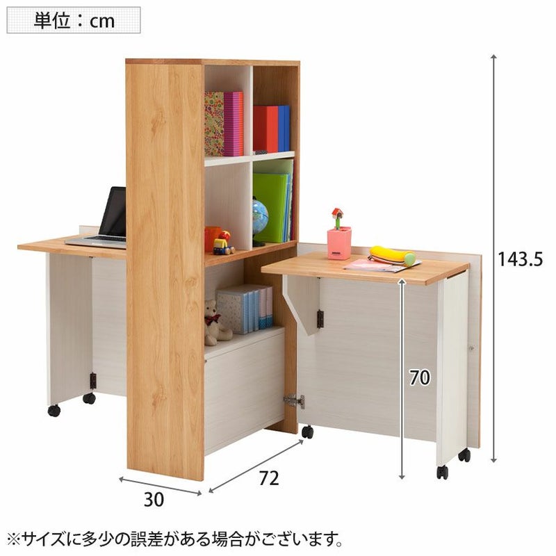 幅30~90~150cm デスク キャビネット付き 折り畳み 収納型 ハイタイプ 2人用 薄型収納デスク