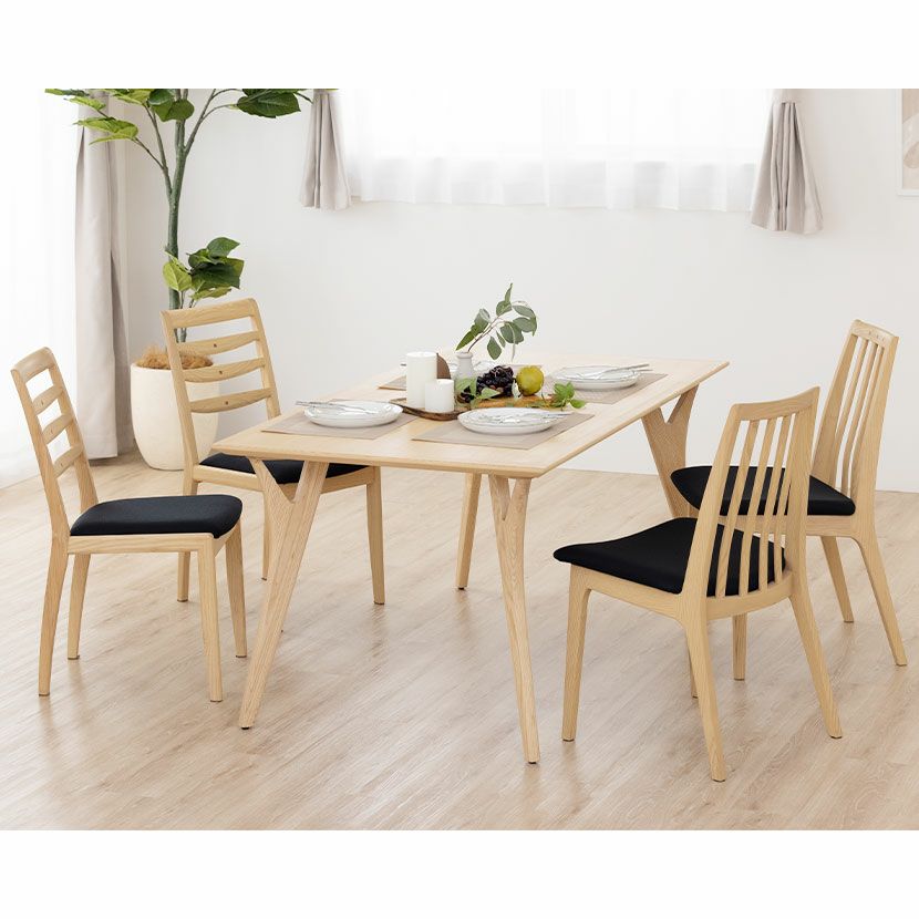 4人用 ダイニングテーブルセット 5点 天然木 木製 食卓テーブルセット 肘付き ダイニングチェア 椅子 おしゃれ 北欧 ナチュラル (幅150cm テーブル×1 回転なし チェア×4)