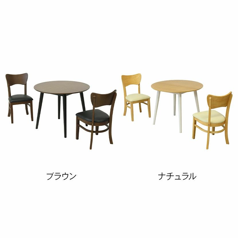 2人用 円形 ダイニングテーブルセット 3点 ダイニングテーブル 木製 食卓テーブル ダイニングチェア 合皮 食卓椅子 おしゃれ シンプル 北欧 (幅90cm 丸テーブル×1 肘なし チェア×2)