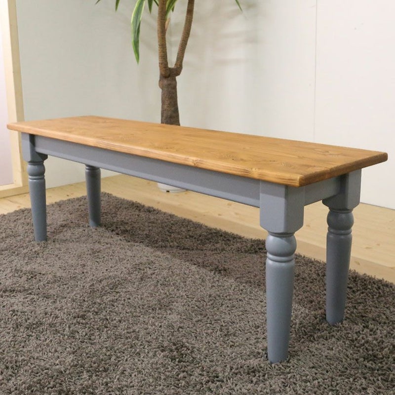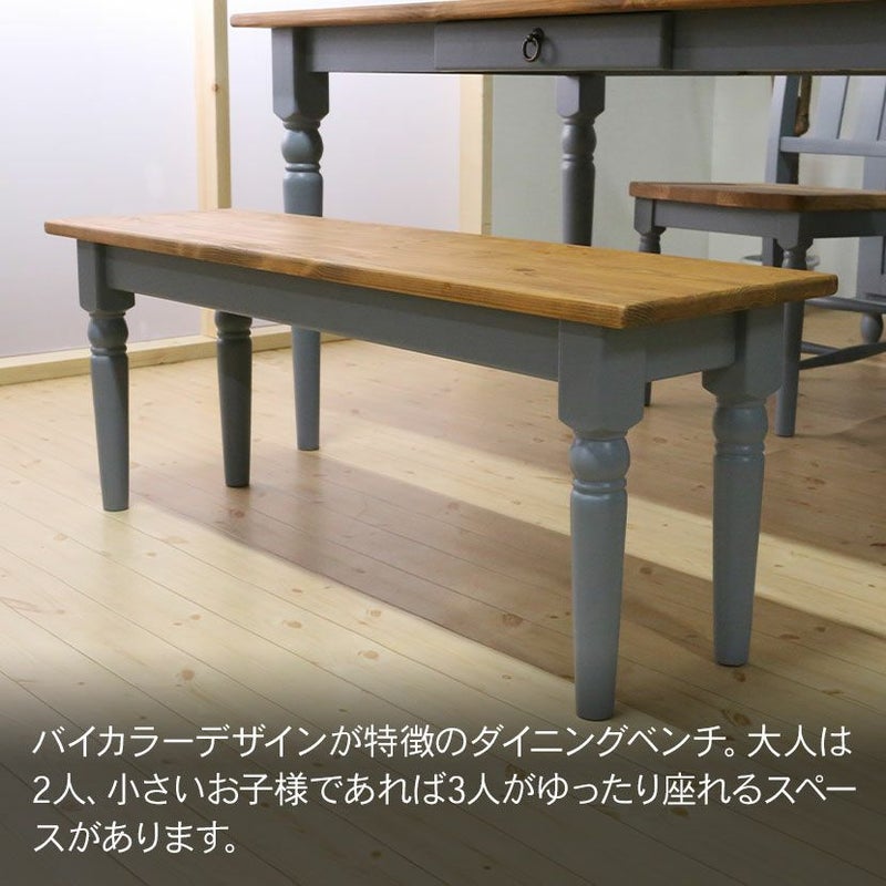 バイカラーデザインが特徴のダイニングベンチ。