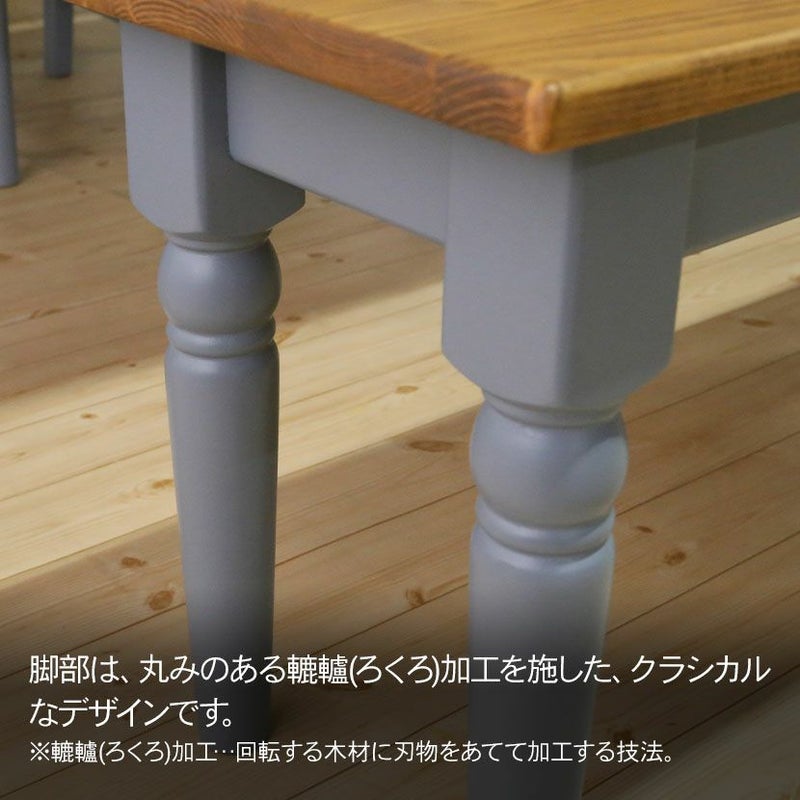 バイカラーが特徴のフレンチカントリーシリーズ、 ラベンダー。丸みを帯びたフォルムにアンティーク調の取っ手と細部にまでこだわり製作しています。パイン無垢材に素朴で淡いホワイト色の組合わせは、温かみのある優しいフレンチダイニング空間を演出してくれます。ラベンダーに近いブルーグレー色は、シックで甘すぎない高級感が漂うダイニング空間を演出してくれます。