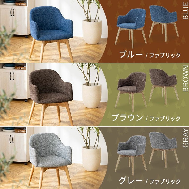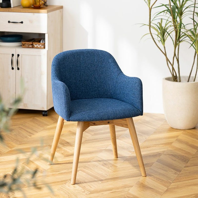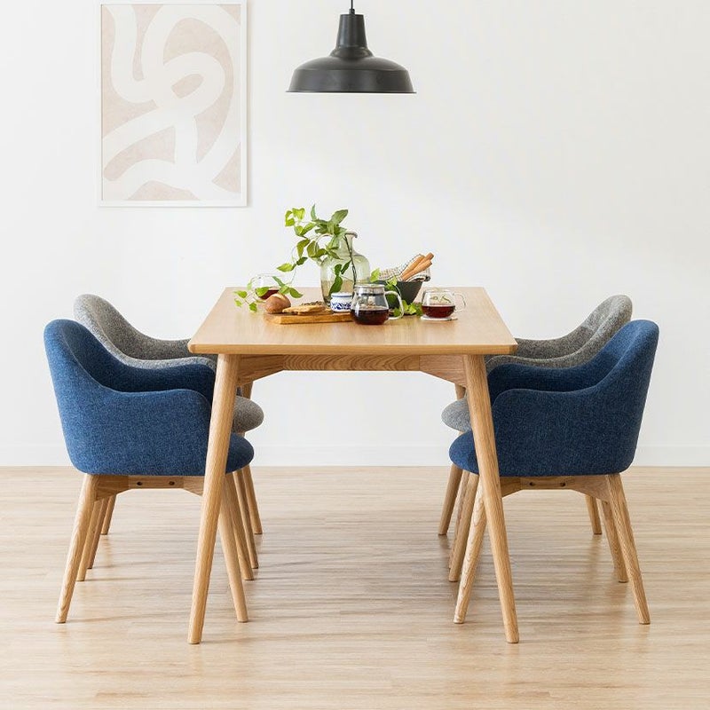 澄んだ空のような濃いめのブルーやアースカラーを取り入れたファブリックと天然木を合わせたチェアは、北欧テイストの空間にピッタリです。