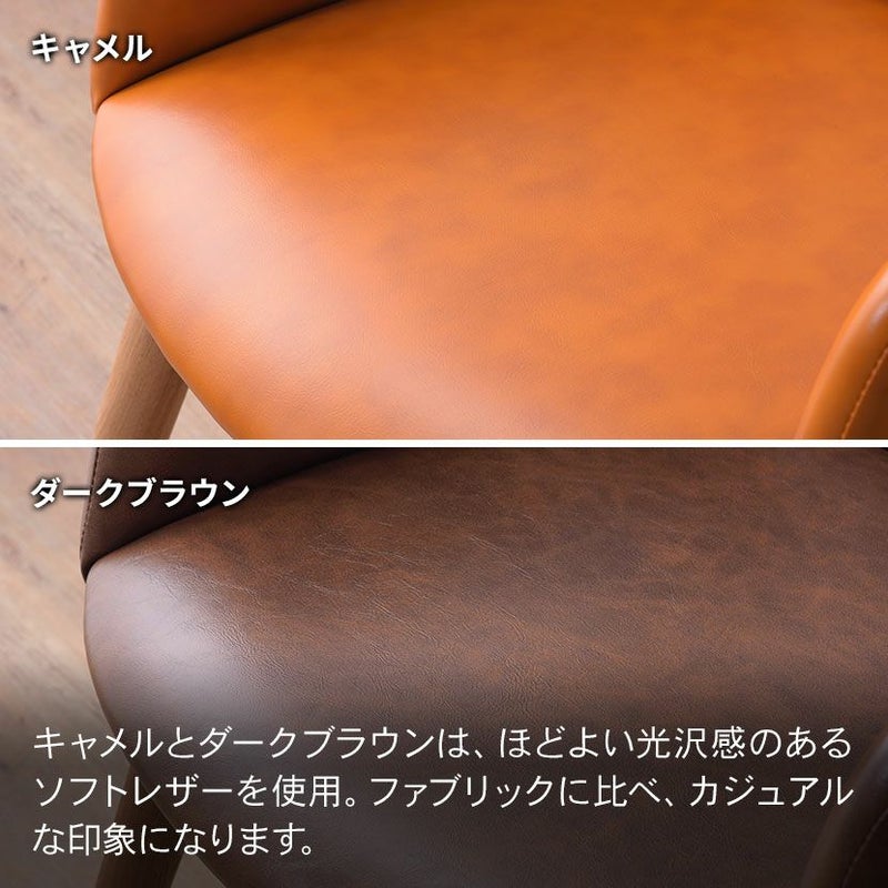 ●キャメルとダークブラウンは、ほどよい光沢感のあるソフトレザーを使用。ファブリックに比べ、カジュアルな印象になります。