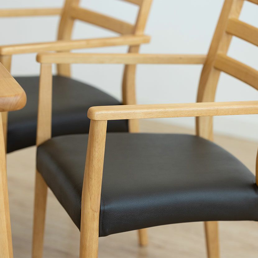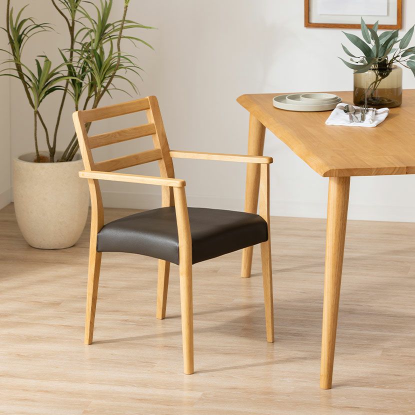 肘掛けは主張しすぎない細身のデザインなので、アームチェアでありながらコンパクトなサイズ感です。
