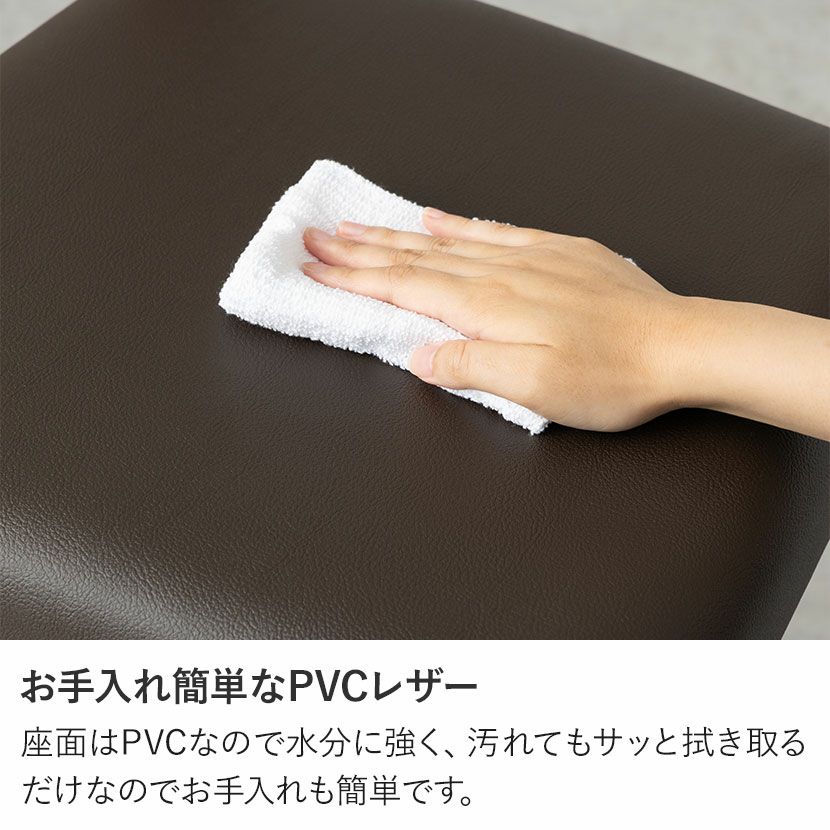 座面はPVCなので水分に強く、汚れてもサッと拭き取るだけなのでお手入れも簡単です。