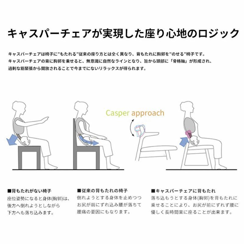 倒れようとする、落ち込もうとする身体(胸郭)を背もたれに乗せる形になるので、お尻が前にズレにくく楽に座ることができます。