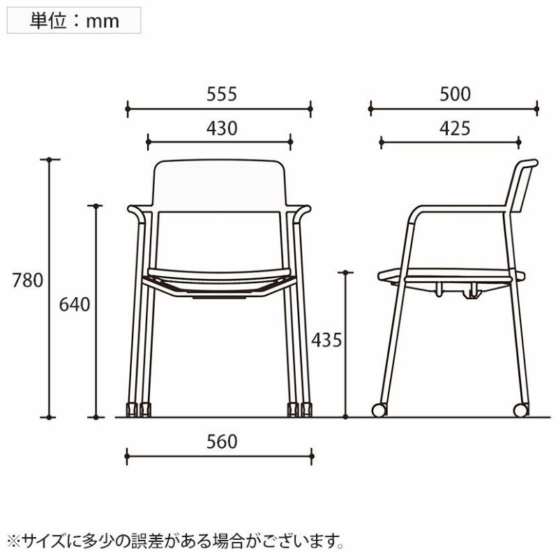 | サイズ(本体) | 外寸 / 幅560×奥行500×高さ780mm 座面 / 幅430×奥行425mm 座面高さ / 435mm 肘高さ / 640mm |
