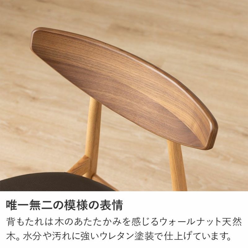 背もたれは木のあたたかみを感じるウォールナット天然木。水分や汚れに強いウレタン塗装で仕上げています。