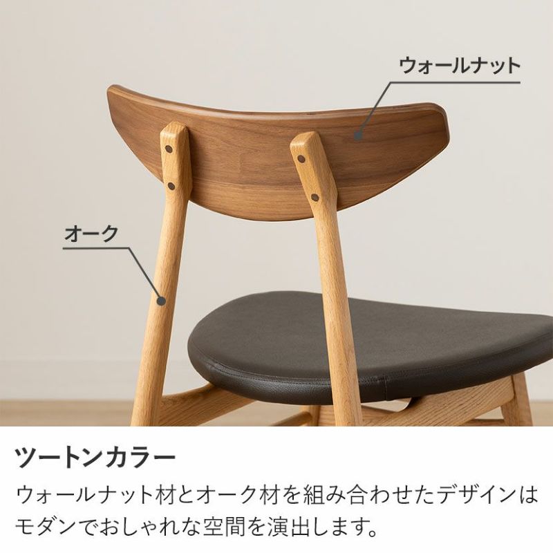 ウォールナットの背もたれとオークのフレームを組み合わせたツートン仕様のダイニングチェアです。