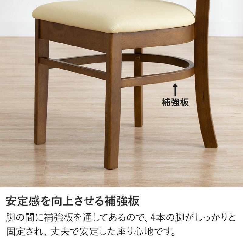 脚の間に補強板を通してあるので、4本の脚がしっかりと固定され、丈夫で安定した座り心地です。