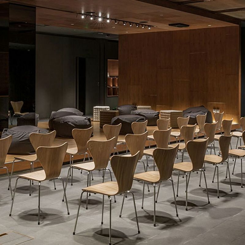 スタッキングが可能で4~5脚を重ねても抜群の安定感。すっきりと収納ができます。