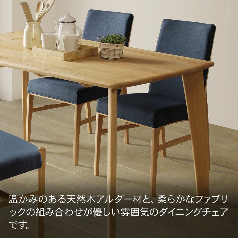 温かみのある天然木アルダー材と、柔らかなファブリックの組み合わせが優しい雰囲気のダイニングチェアです。
