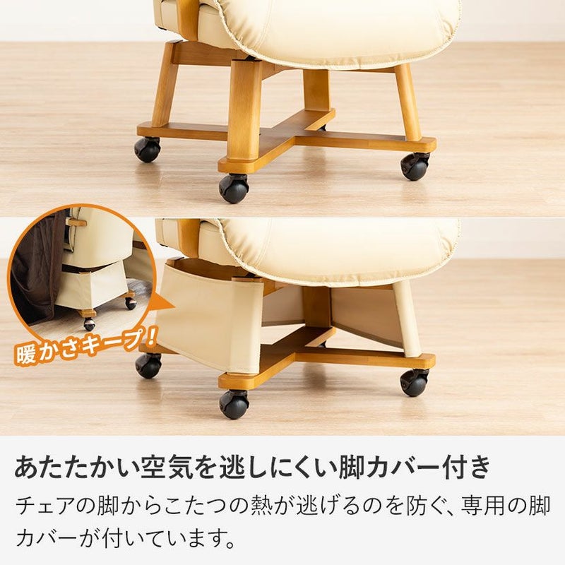チェアの脚からこたつの熱が逃げるのを防ぐ、専用の脚カバーが付いています。