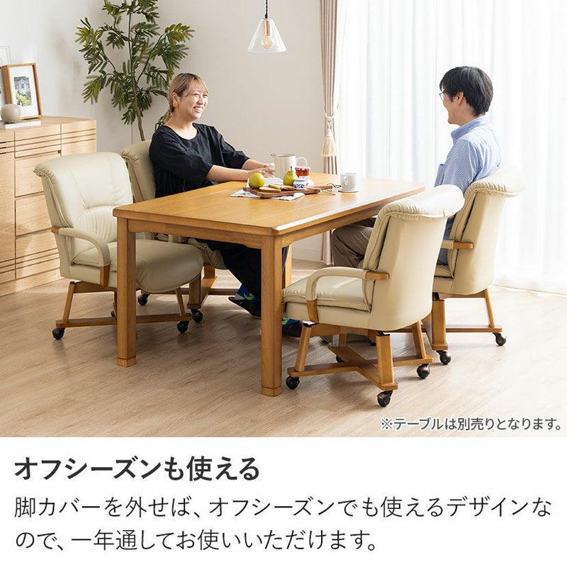 チェアに座ったままこたつに入ることができるので、食事中も足元まであたたかく過ごせます。