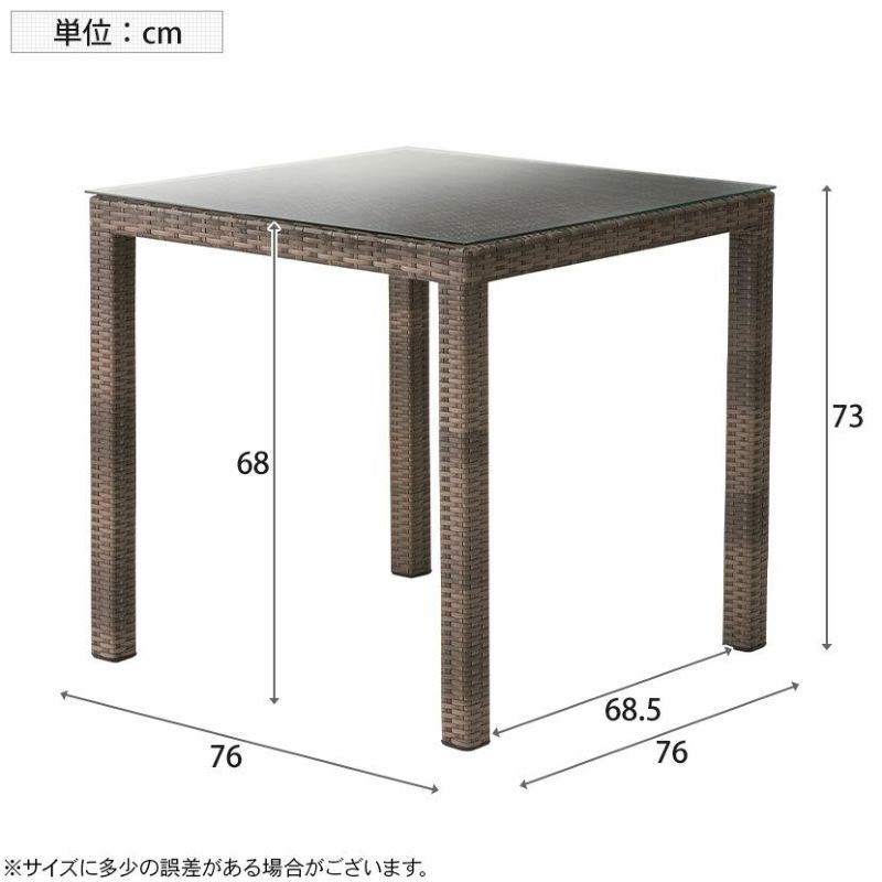 幅76cm メッシュ柄 ダイニングテーブル 強化ガラス天板 食卓 机 正方形 インテリア アジアン インテリア 編み込み カフェ リゾート シンプル ベランダ 屋外 ガーデン 店舗 完成品